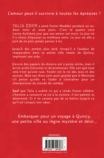 Découvrez le troisième tome de la série Les Eden, là où les secondes chances se mêlent aux blessures du passé et où la passion refuse de s’éteindre. Une romance de retrouvailles où le pardon, le désir et la persévérance deviennent des armes tout aussi puissantes que les coups qu’on porte sur un ring.
