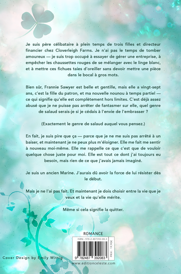 Découvrez le premier tome de la série Cloverleigh Farms, où les secondes chances naissent entre responsabilités écrasantes et attirances qu’on ne peut plus nier. Là où un homme qui ne croit plus avoir droit au bonheur rencontre la seule femme capable de lui rappeler tout ce qu’il mérite encore.