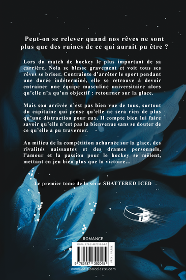 Découvrez le premier tome de Shattered Ice, où les rêves brisés se heurtent à la glace, et où une seconde chance peut tout changer. Une romance sportive où résilience, rivalité et passion s’entremêlent, et où Nola devra prouver qu’elle peut encore se battre pour le hockey, pour sa place, et peut-être pour son cœur.